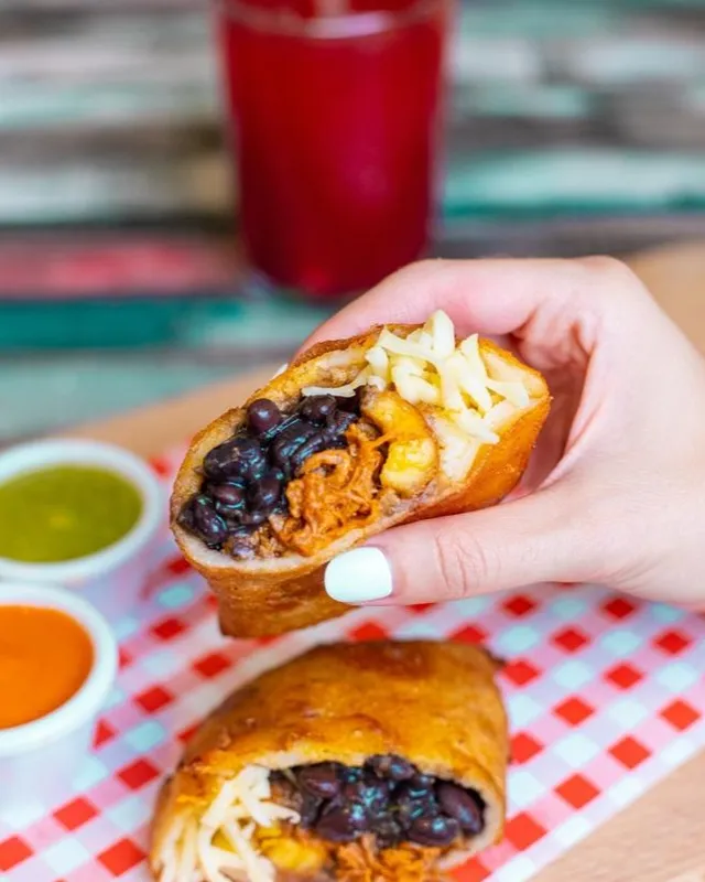 Arepa rellena de nuestra carne mechada y queso a eleccion.